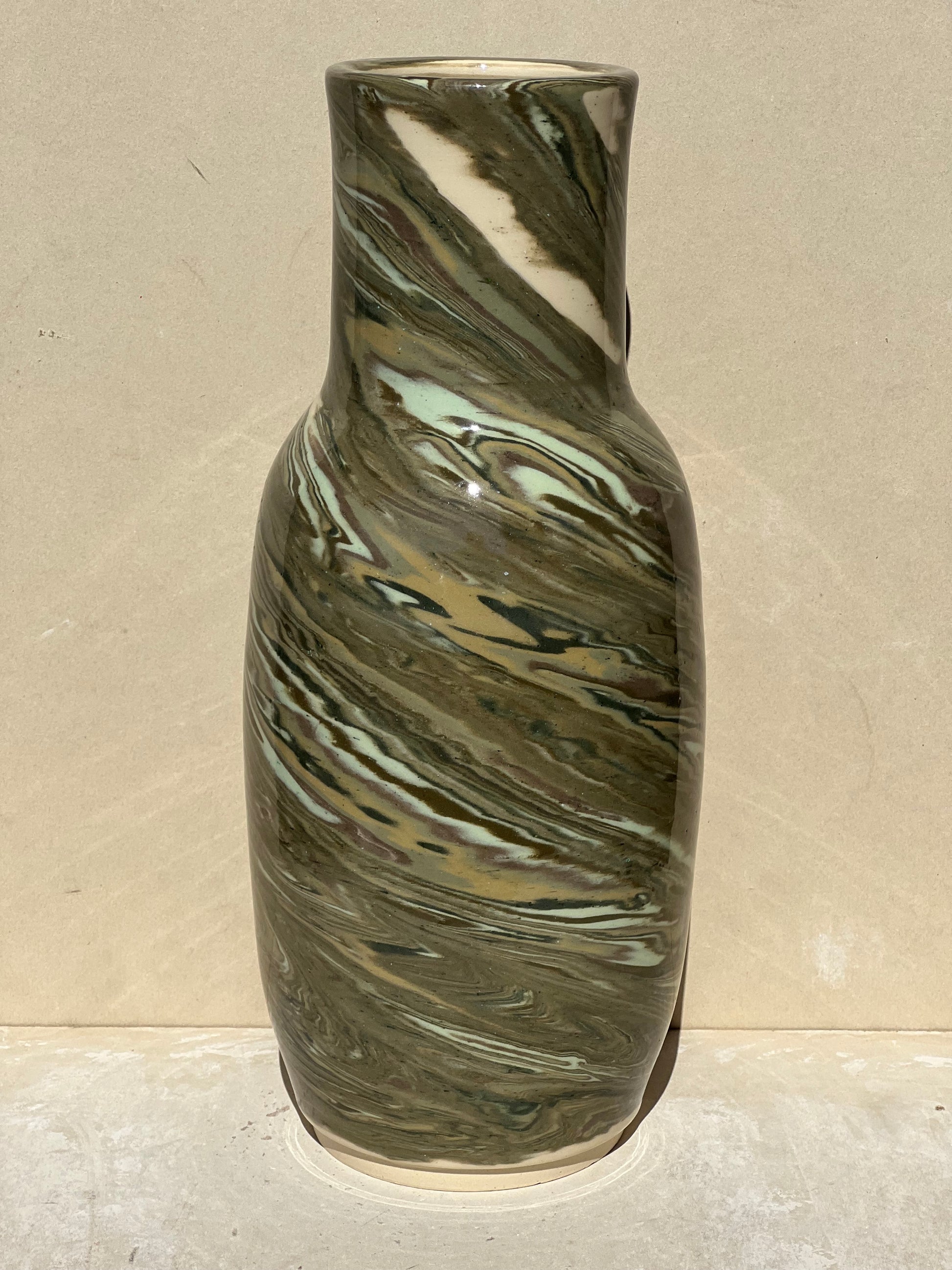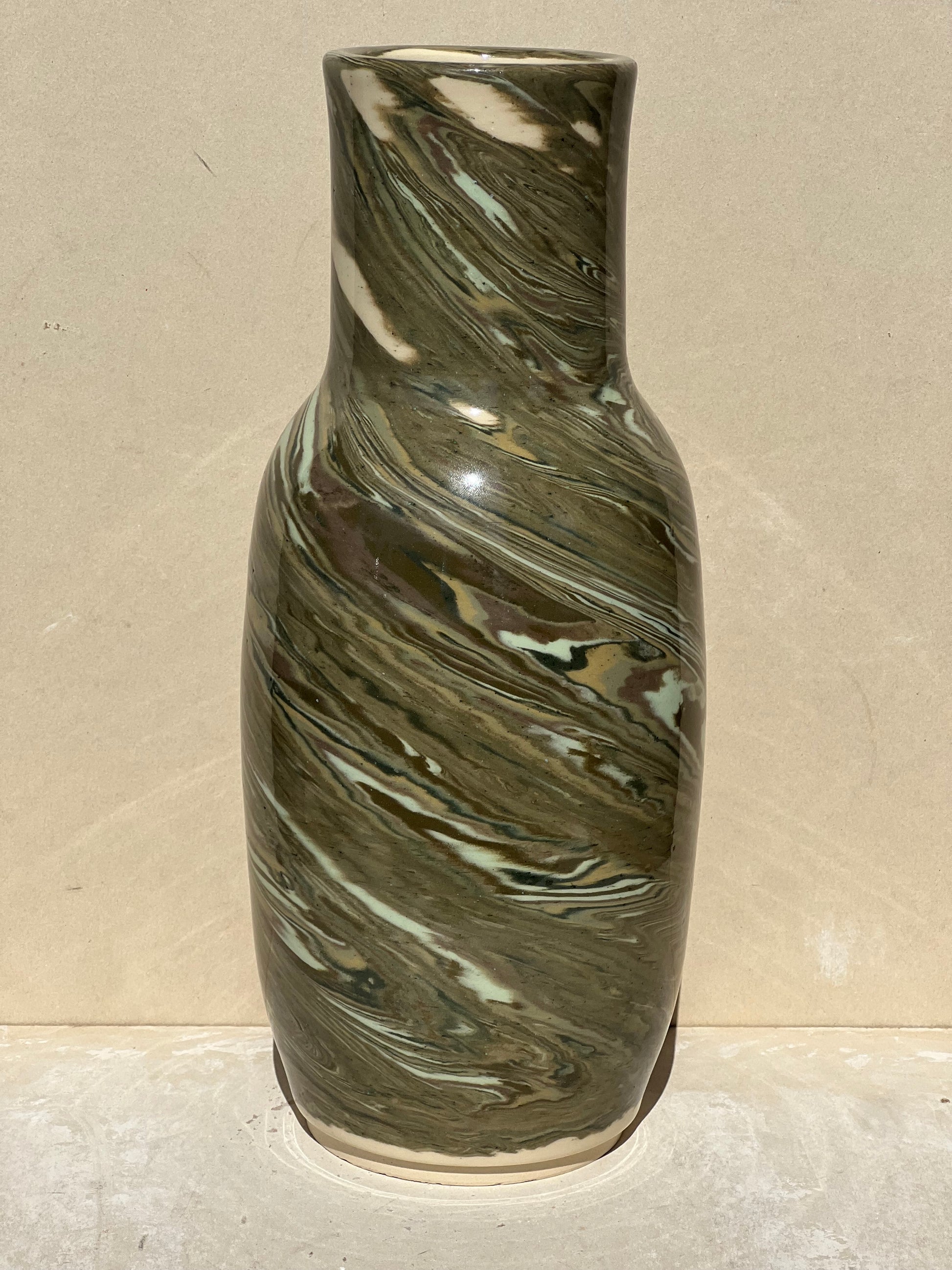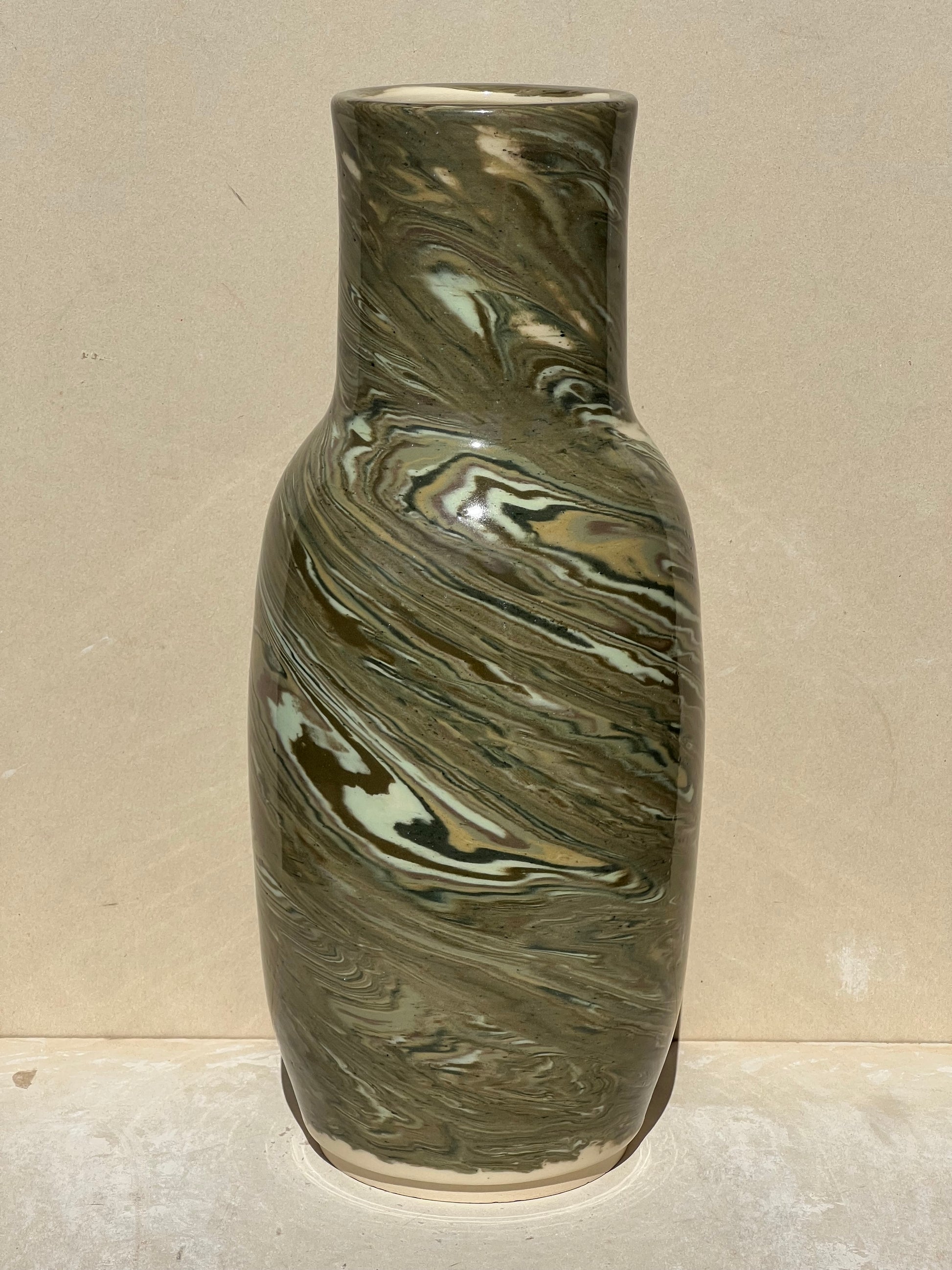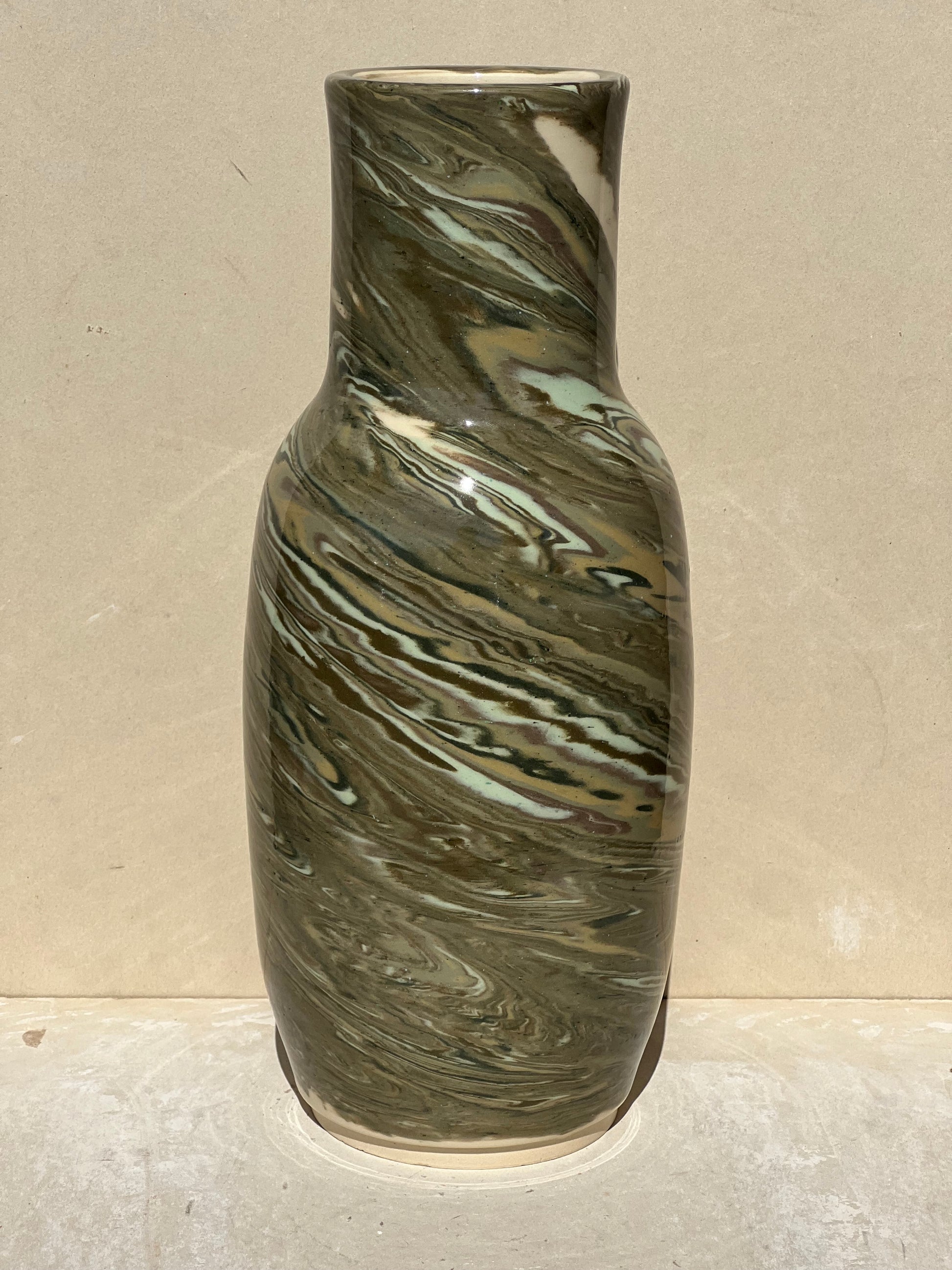 Created with a marbled nerikomi pattern of all the green I have. Pattern was made using 35 different layers of green