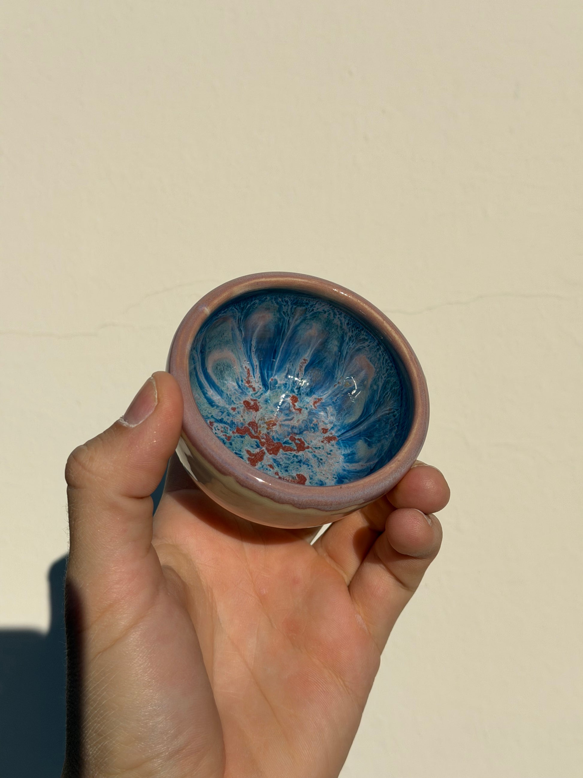 I love these mini bowls. They are perfect for espresso, holding jewelry, or even a pinch of spices. Each bowl is made with six layers of glaze on the interior and finished with a clear exterior glaze. They are fully food safe. No dimensions for the pieces but they hold about 3-4 oz of water.