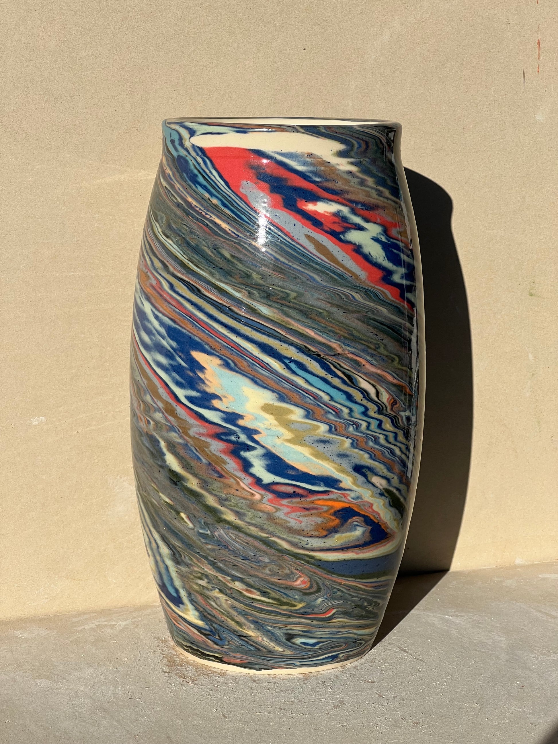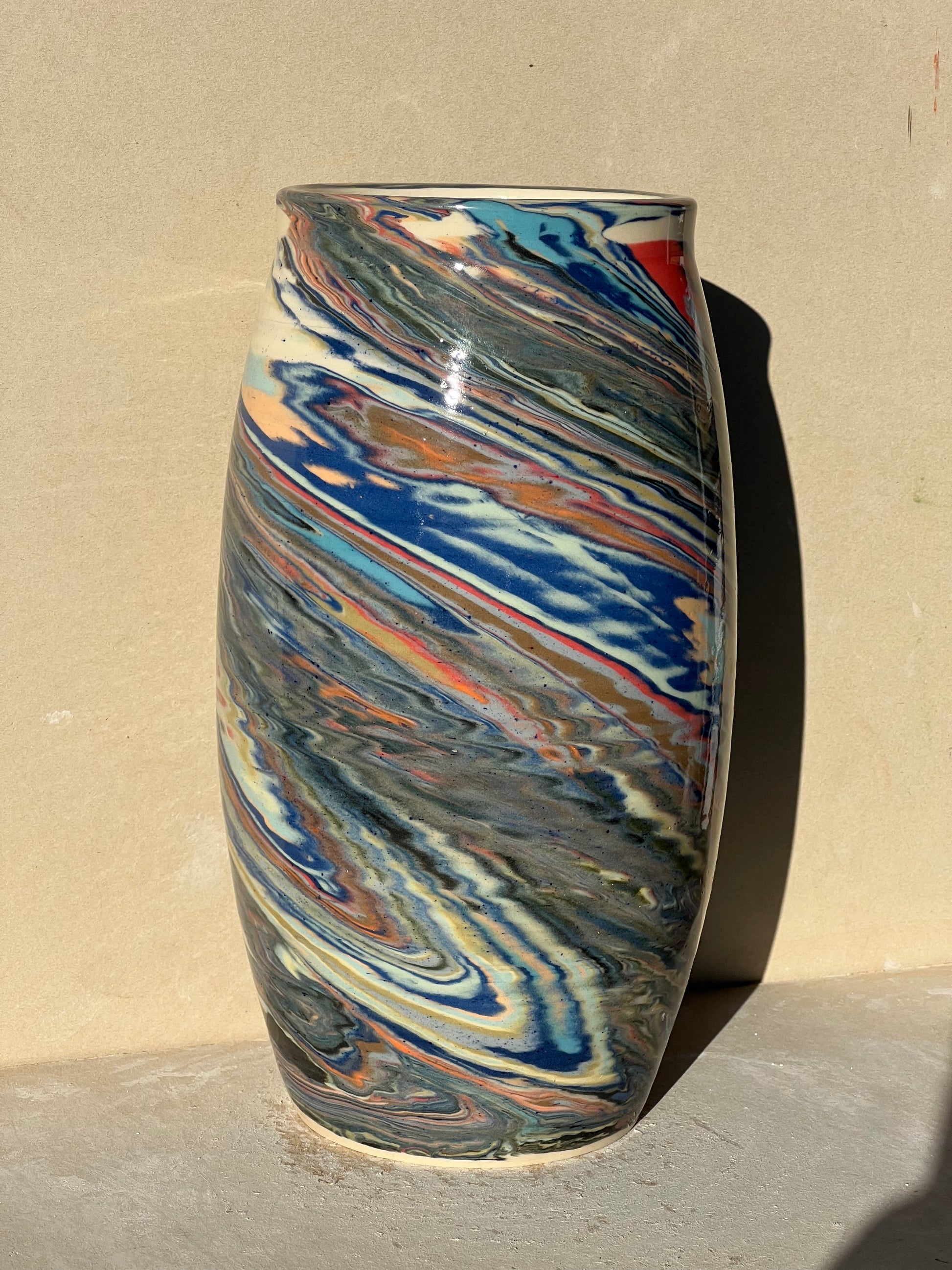 Created with a marbled nerikomi pattern of 23 different colors. I make all colored clays my self.
