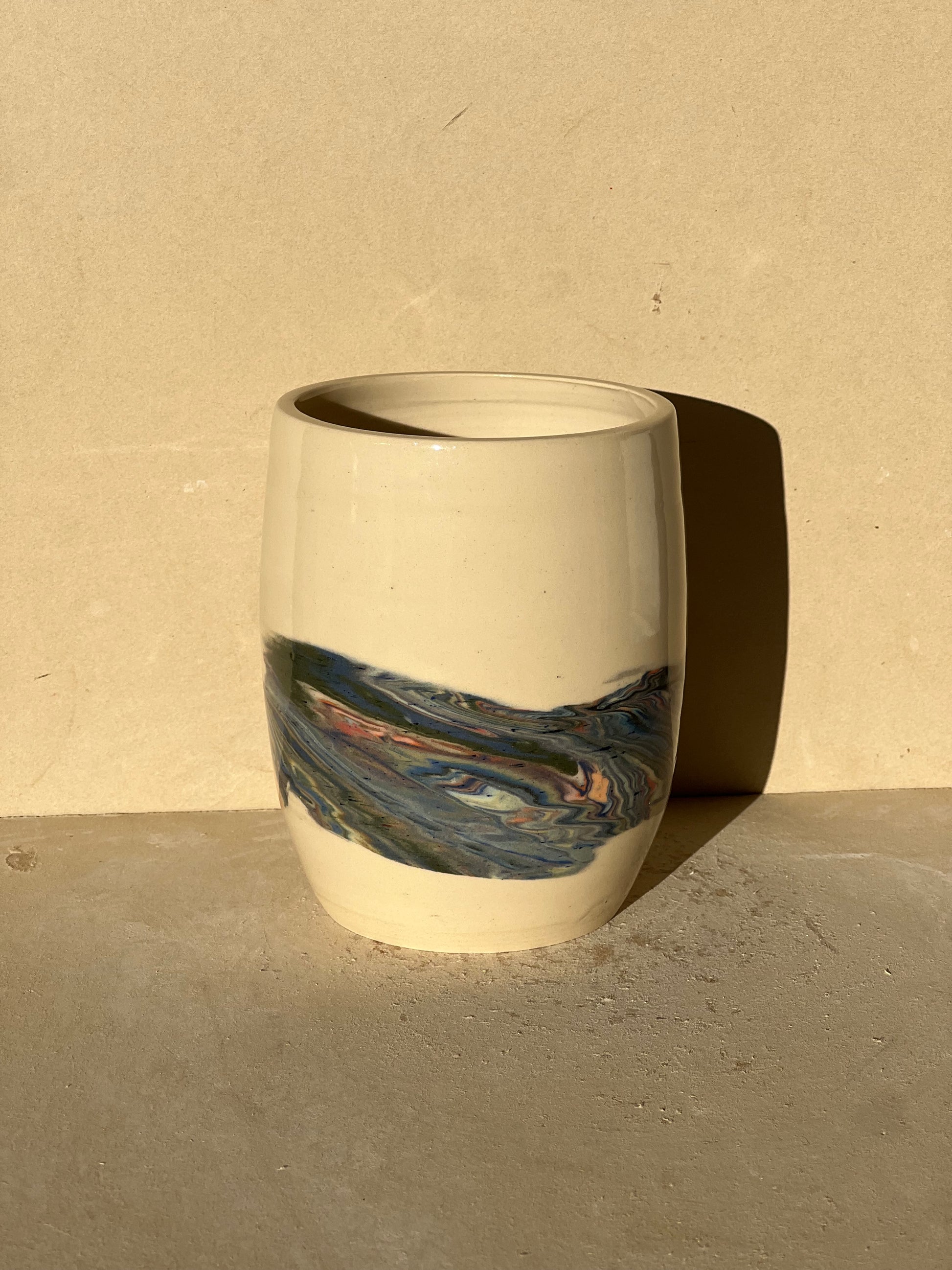 Created with a marbled nerikomi pattern of 23 different colors. I make all colored clays my self.