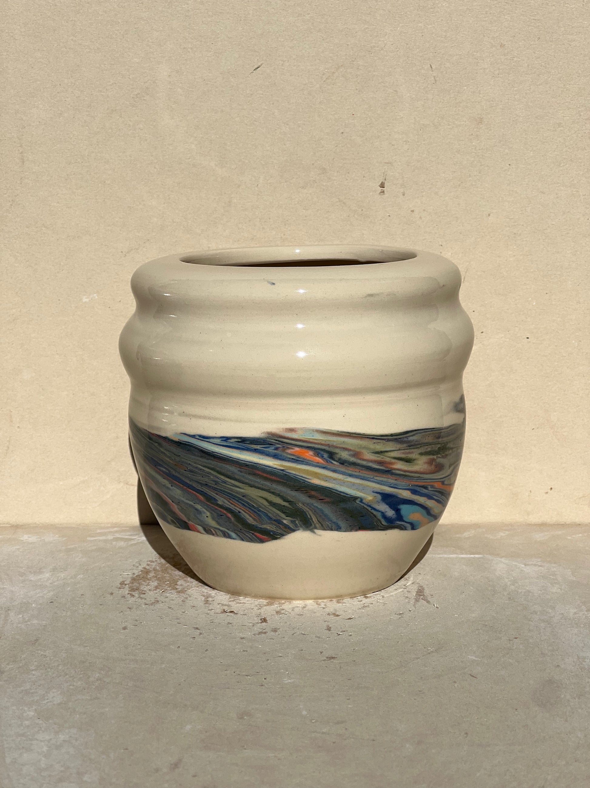 Created with a marbled nerikomi pattern of 23 different colors. I make all colored clays my self.