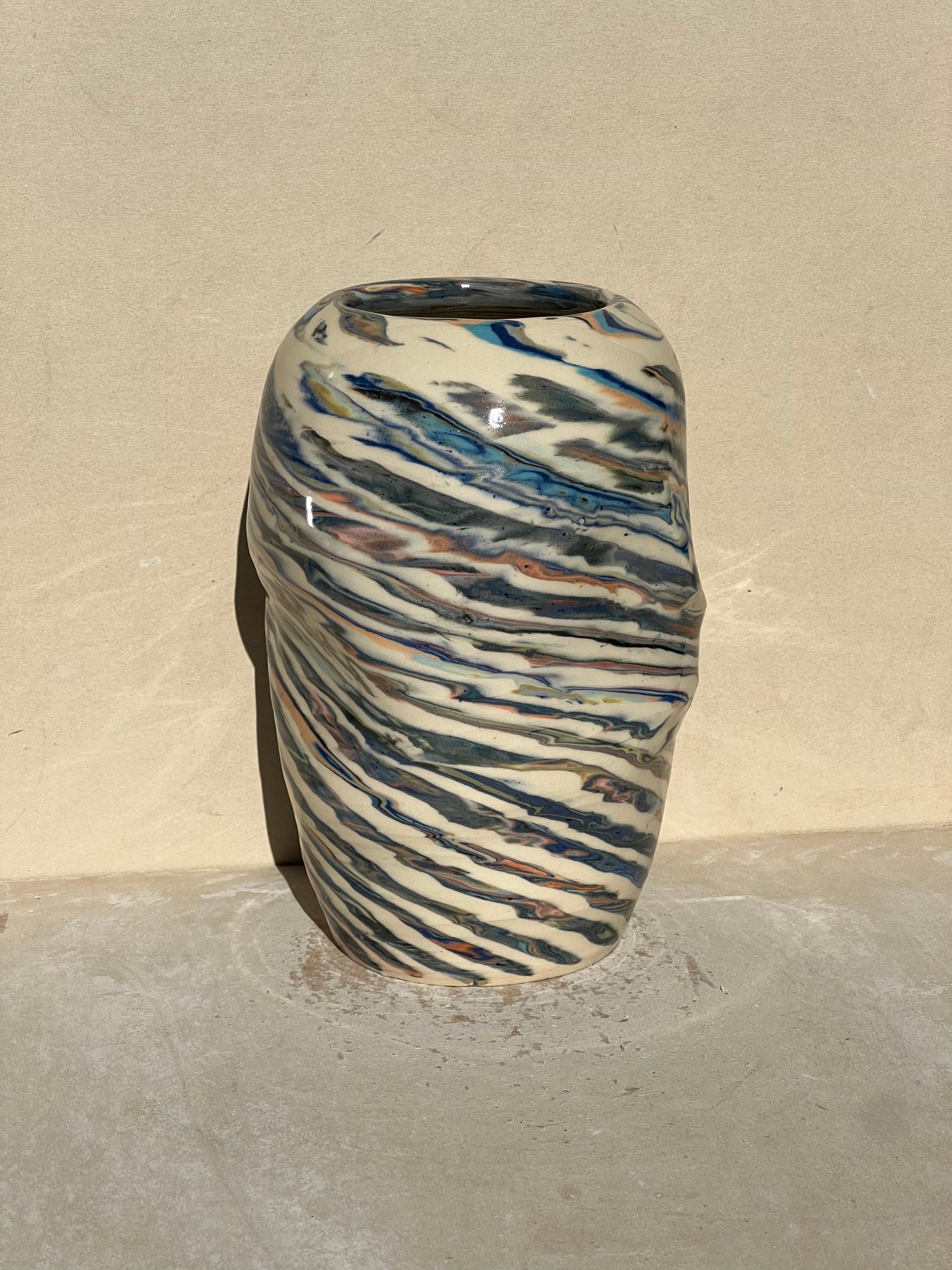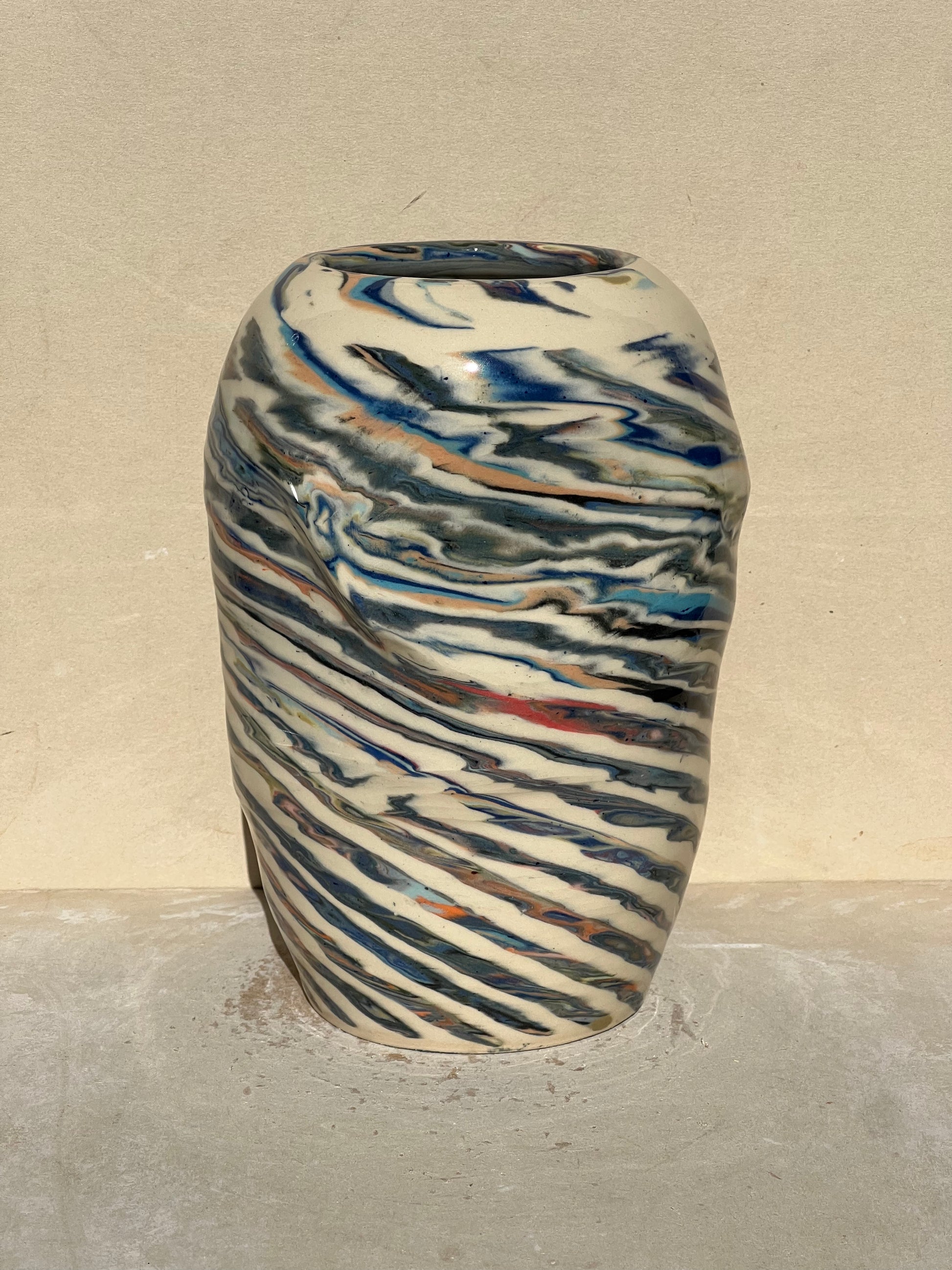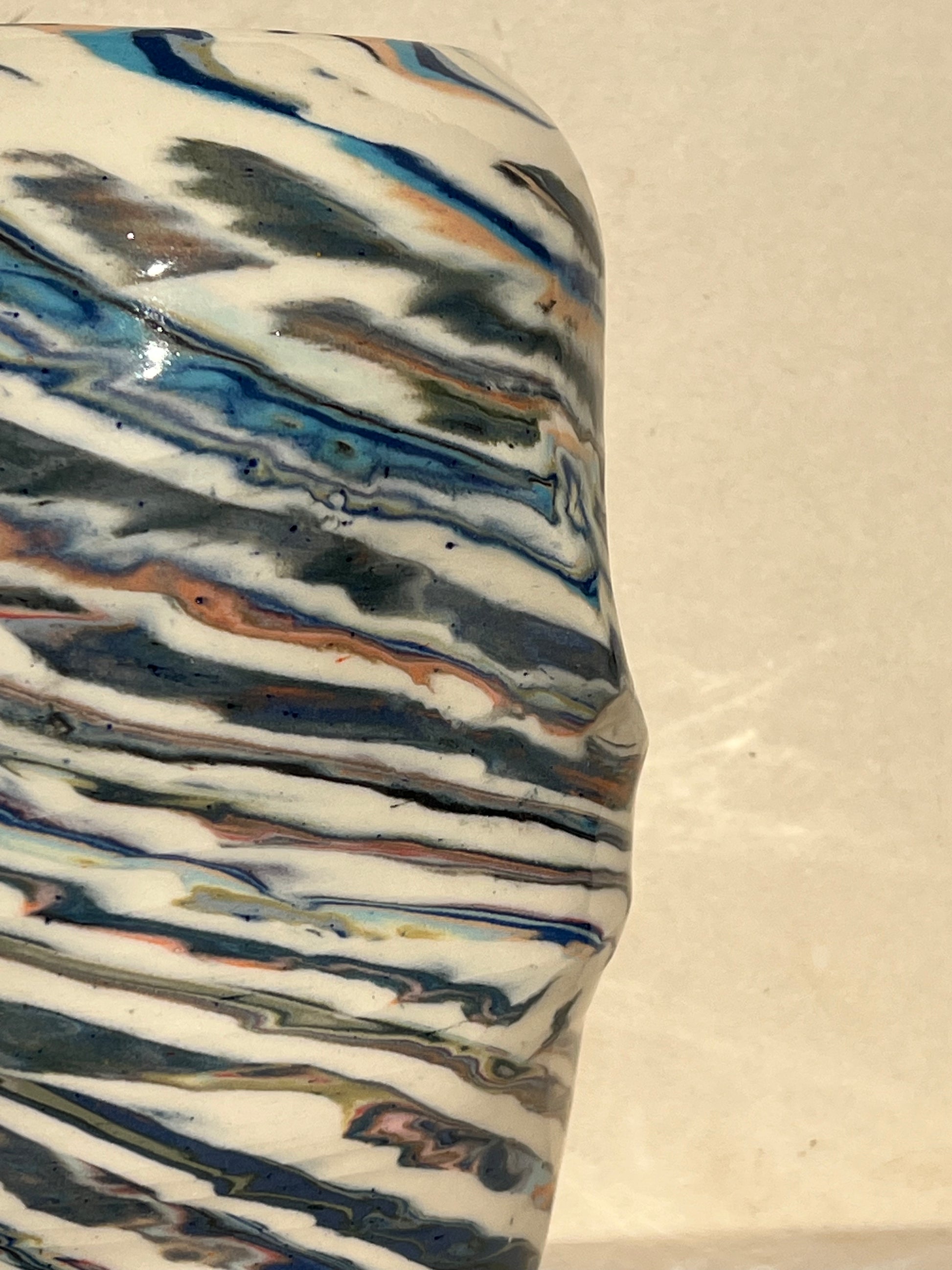 Created with a marbled nerikomi pattern of 23 different colors. I make all colored clays my self.