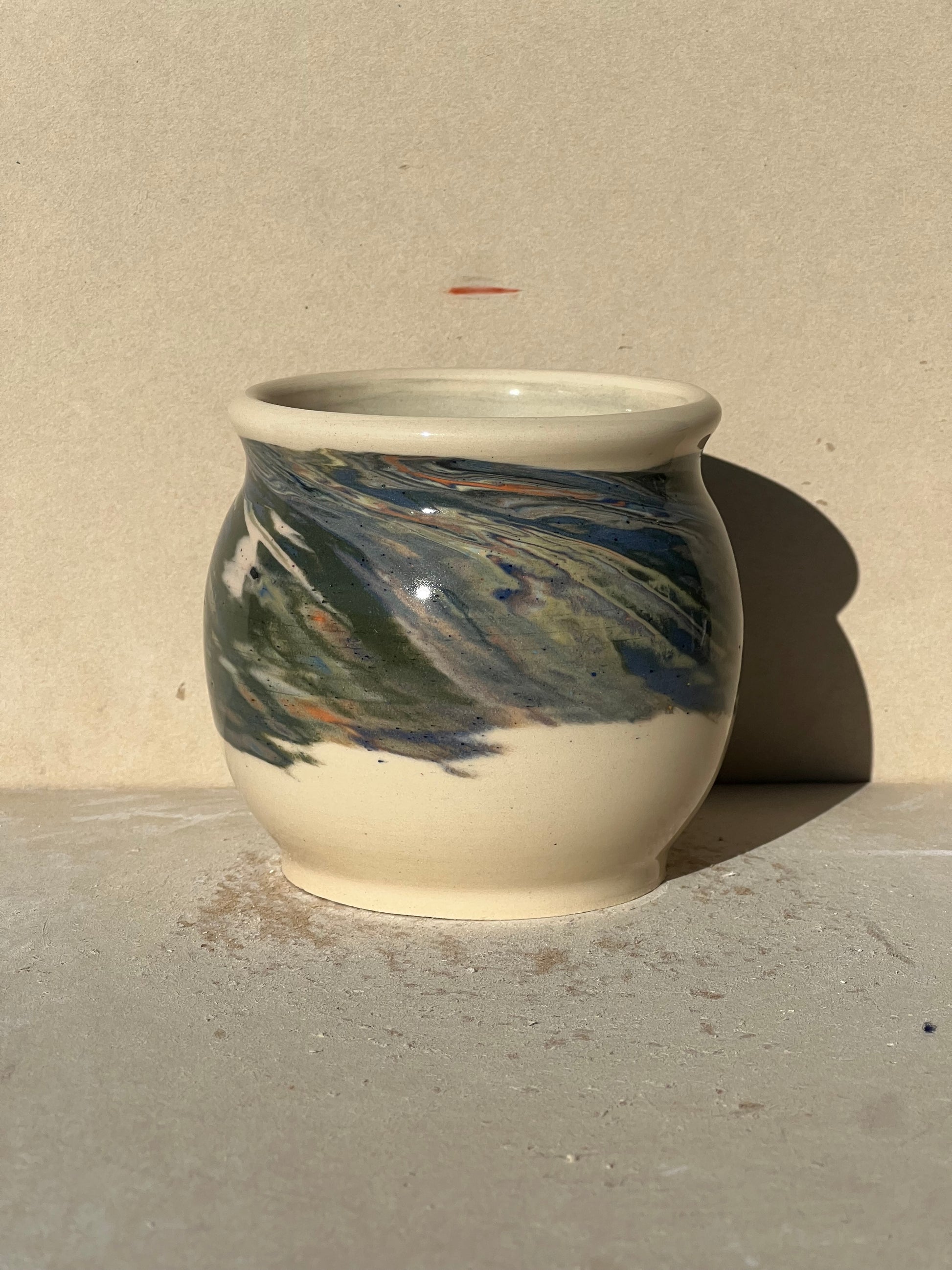 Created with a marbled nerikomi pattern of 23 different colors. I make all colored clays my self.