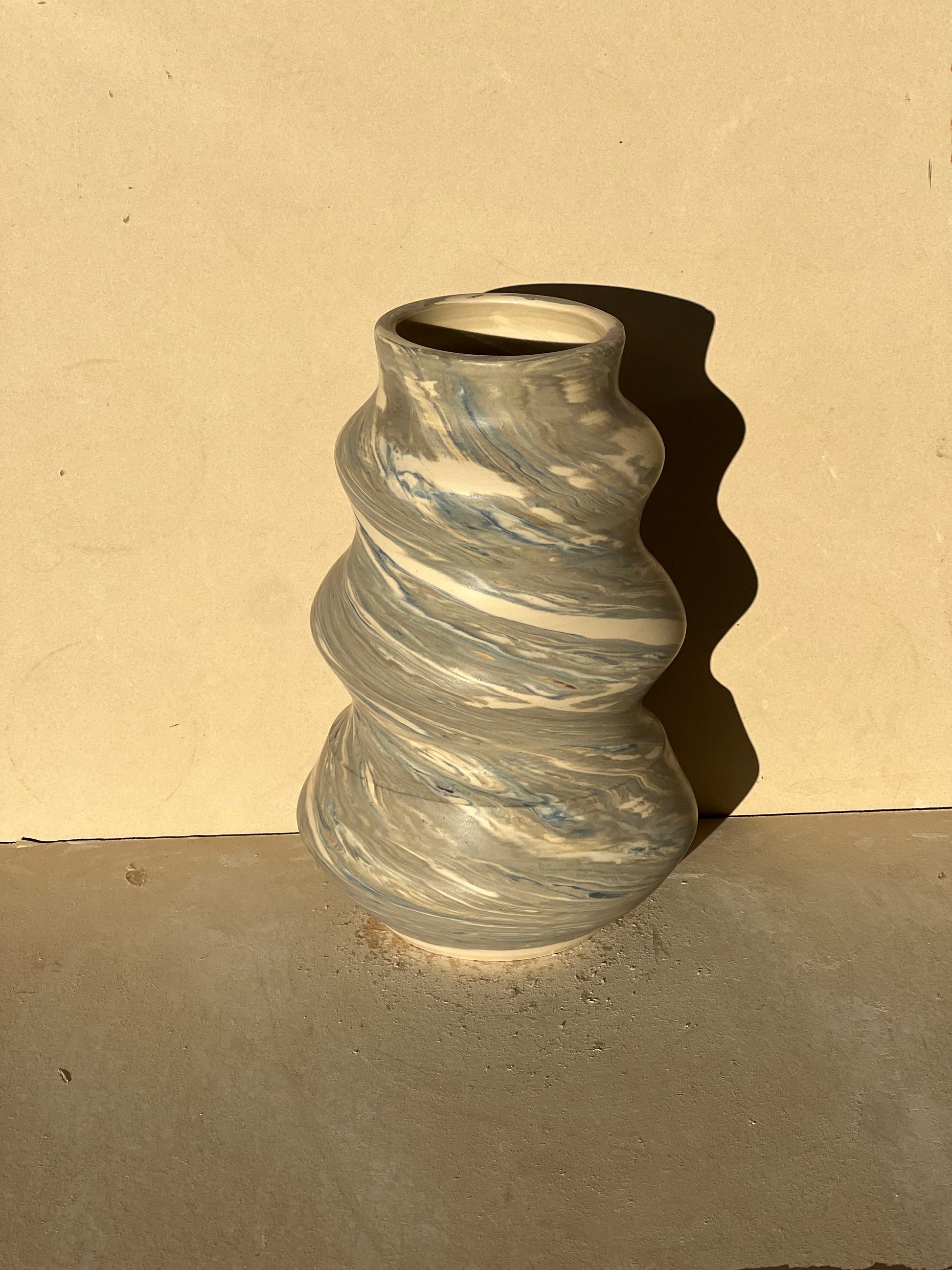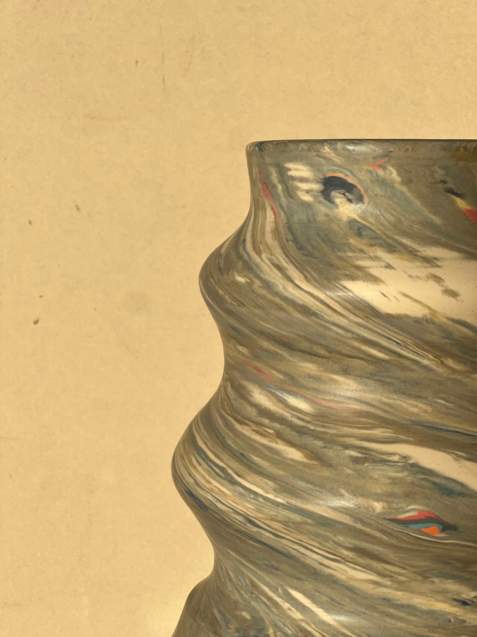 Made from a pattern of reclaim clay that thought had a lot of interesting color in it. Finished with a matte glaze, interior is glossy glazed. This piece is water tight.