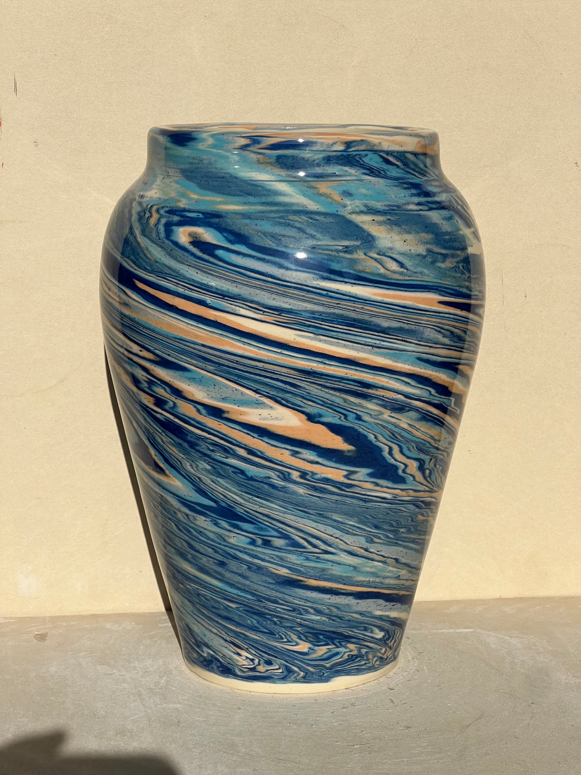 I created a pattern using a bunch of different blues and a sand colored clay.